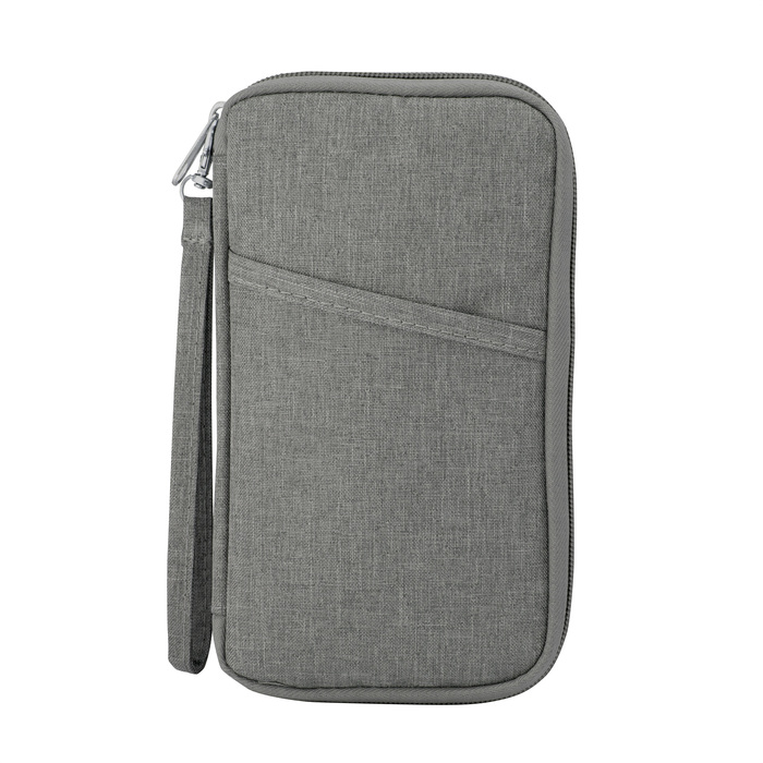 Billetera portadocumentos. Estructura acolchada con cierre perimetral y un bolsillo al frente. Bolsillos internos de red de ambos lados con múltiples espacios organizadores y un bolsillo con cierre. Correa de poliéster desmontable con mosquetón. Tirador de cierre metálico.