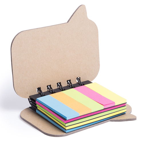 Original bloc de notas adhesivas de anillas con diseño de bocadillo y tapas de suave tacto acabadas en resistente cartón reciclado rígido. Con 100 notas adhesivas grandes y 125 mini notas adhesivas. 100 Notas Adhesivas 5,1 x 7,5 cm. 125 Mininotas Adhesivas 1,5 x 5,1 cm