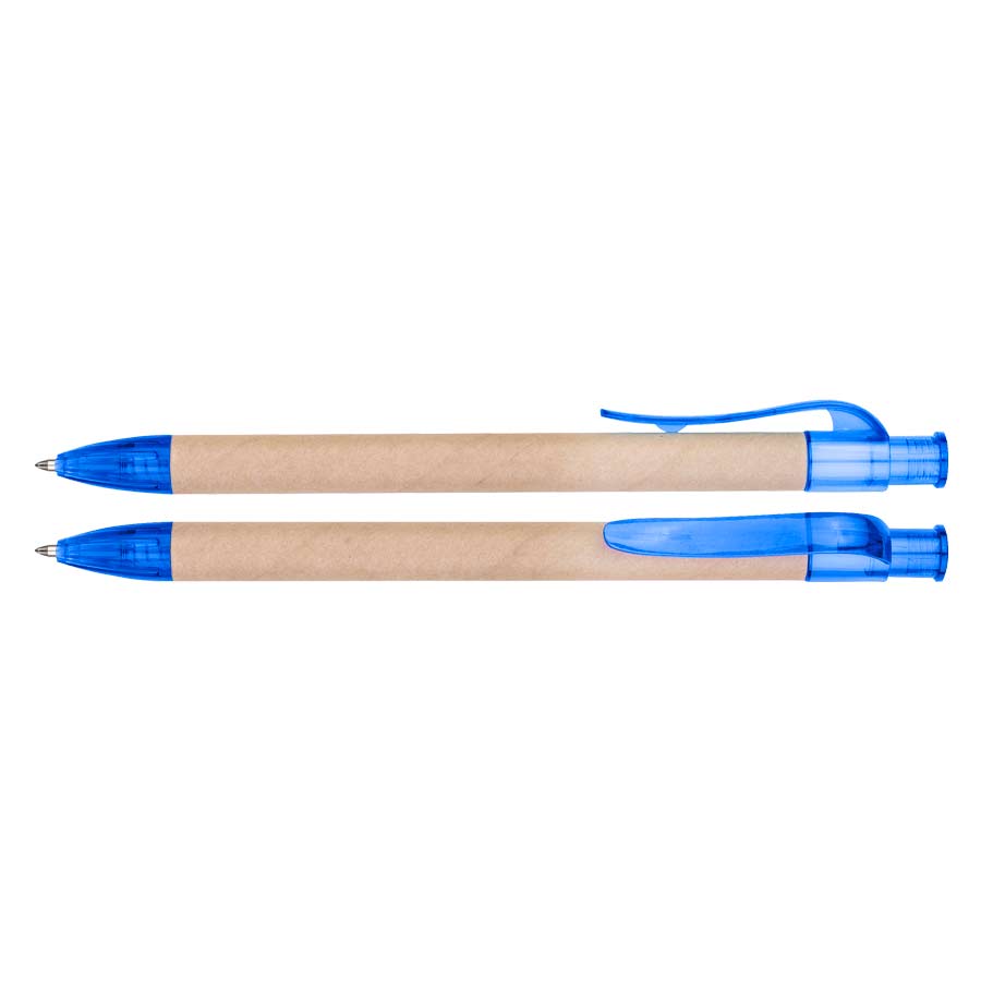 Bolígrafo Ecológico "Planet" de cartón reciclado, con terminales de color traslúcido. Escritura azul.