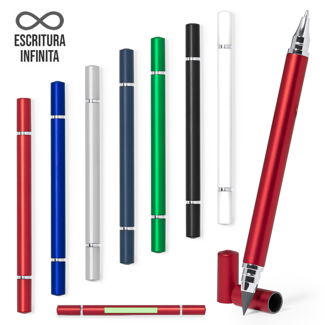 Bolígrafo lápiz eterno 2 en 1. Con cierre de capucha, incluye bolígrafo en un extremo (carga jumbo y tinta azul), y lápiz eterno en el otro extremo, para así usar siempre el mismo lápiz y no generar residuos. Cuerpo en resistente ABS de acabado metalizado. Disponible en amplia gama de colores.