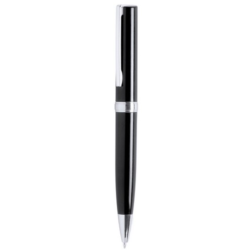 Bolígrafo de mecanismo giratorio en variada de vivos colores brillantes con accesorios en colore plateado. Tinta azul.