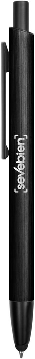 Aluminio. Cuerpo metálico. Clip, punta y pulsador plásticos. Punta touch. Tinta azul.