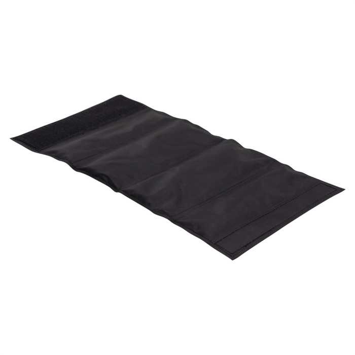 35 x 17,5 x 0,5 cm. Poliéster + PVC + gel enfriante. Peso 270 g. Cooler/enfriador de Botellas. Interior con relleno de gel.