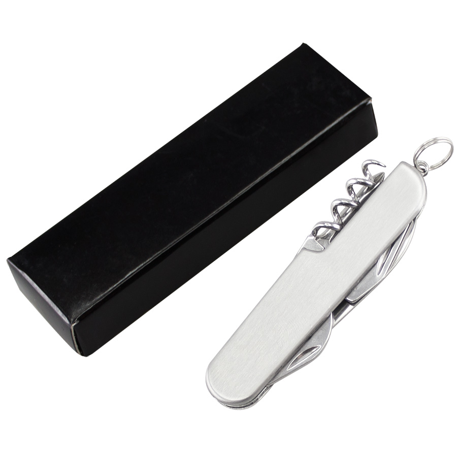 Cortaplumas de Acero Inoxidable con 5 funciones. Incluye caja de regalo negra.