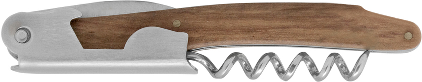 11,6 cm. Acero inoxidable. Peso: 68g. Abridor de botellas de vino en acero inoxidable con mango de madera en color natural. Accesorios incorporados: sacacorchos, navaja y destapador. Presentación en caja de regalo.