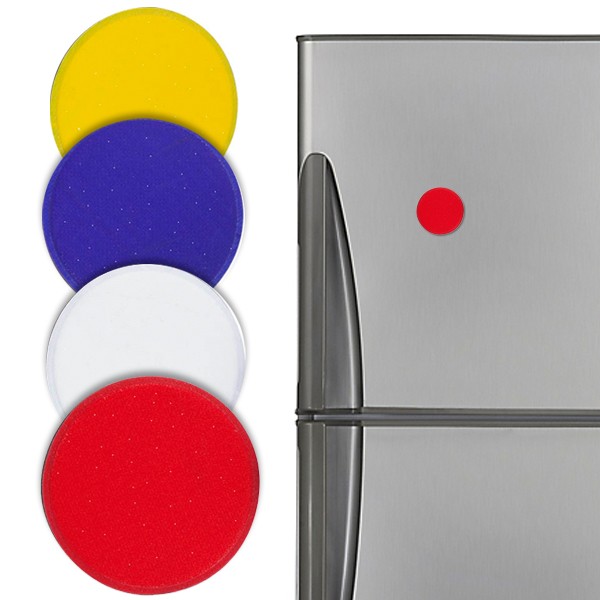 Imán de 5,5cm de diámetro en PVC, con superficie brillante en variada gama de vivos colores.