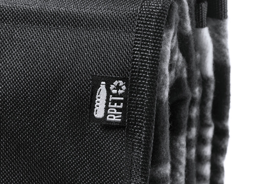 Manta de picnic de calidad premium, fabricada en poliéster RPET de 160g/m2, elaborado a partir de plástico reciclado para así fomentar la reutilización de residuos plásticos y contribuir a la sostenibilidad del planeta. Medidas 120x150cm, con lado para sentarse en patrón tartán bicolor de suave tacto. Lado en contacto con el suelo en resistente PEVA. De fácil plegado y de tamaño compacto, incluye asa de transporte y solapa con cierre de velcro, con distintivo RPET en etiqueta.