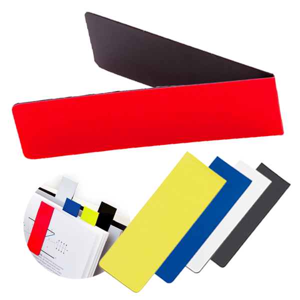 Marcapáginas plegable de mecanismo magnético y acabado brillante en divertidos colores. Magnético