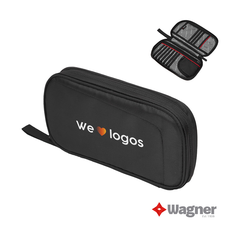 Portapasaporte para guardar dinero, tarjetas de crédito, pasaporte, teléfono celular, pasajes y bolsillo interno con cierre para artículos de mayor valor. Confeccionado en Polyester. Medidas: 23 x 11.5 x 9 cm. Wagner