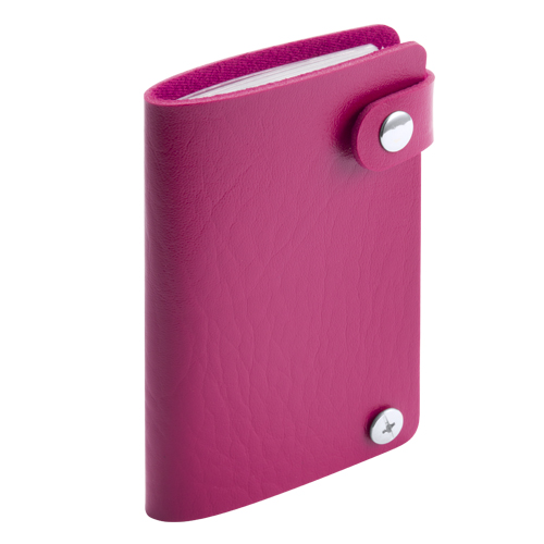 Tarjetero con cuerpo en suave acabado en polipiel de llamativos colores y doble cierre de corchete metálico. Con 10 compartimentos interiores en resistente PVC transparente. 10 Compartimentos