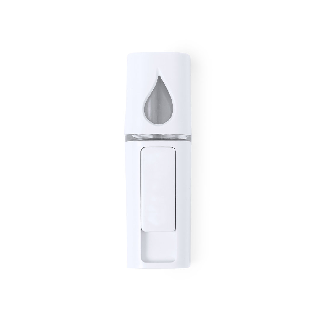 Fantástico vaporizador de bolsillo. Refrescante e hidratante pulverizador eléctrico crea una ligera bruma para rociar sobre la piel deslizando la tapadera protectora. Contenedor de 15 ml recargable con tapón de rosca, indicador de nivel y elegante luz morada. Con espejo en la tapadera. Funciona con batería de 250 mAh, cable incluido. Presentado en una caja individual. Luces Led. 15 ml. Batería 250 mAh