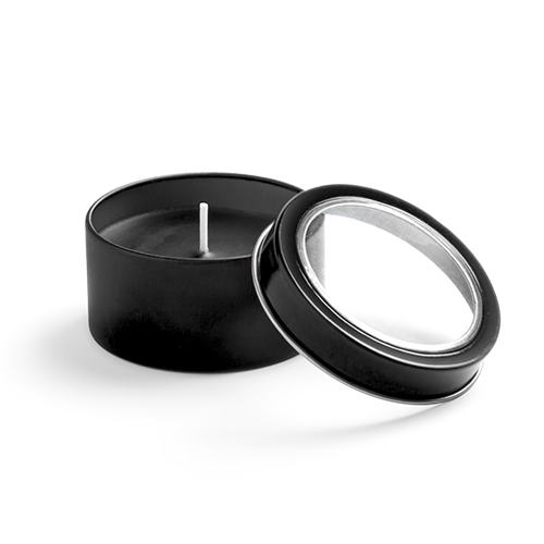 Vela aromática de fragancia vainilla presentada en original tarro metálico con ventana transparente en variada gama de vivos colores. Aroma Vainilla