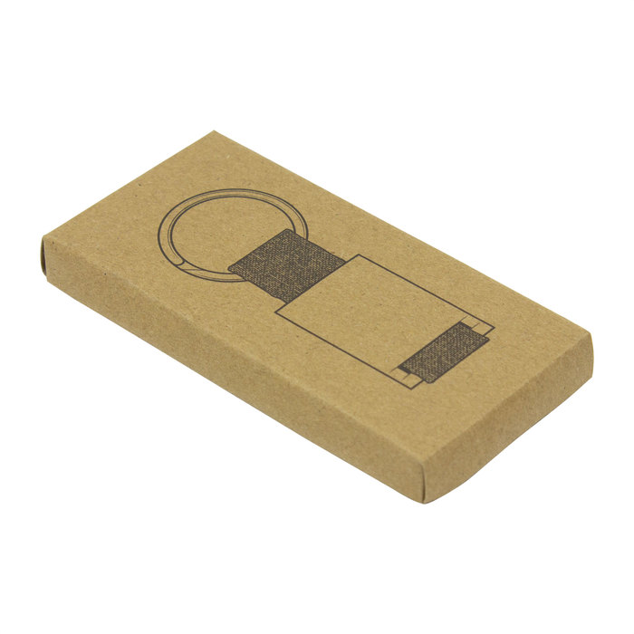 Llavero. Estructura metálica con aleación de zinc, terminación en negro mate. Correa de PP.